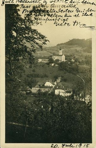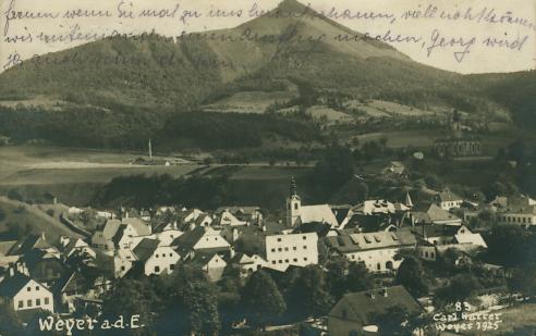 Postkarte Weyer von Westen mit Pfarrkirche |