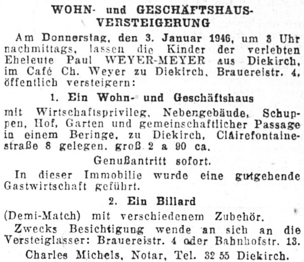 Charles Michels, Notar, Tel. 32 55 Diekirch.